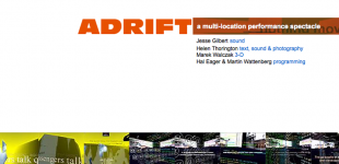 ADRIFT was an evolving multi-location Internet performance event that combined movement through 3D space, multiple narratives and richly textured sound streaming between virtual and real geographies.